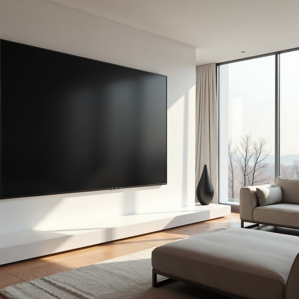 Instalar uma TV com mais de 100 polegadas exige planejamento de espaço. Certifique-se de que a sala seja grande o suficiente para acomodar uma distância de visualização adequada, tipicamente de pelo menos 3 metros da tela. As considerações devem incluir a capacidade da parede para suportar suportes pesados e garantir vistas desobstruídas das principais áreas de assento.